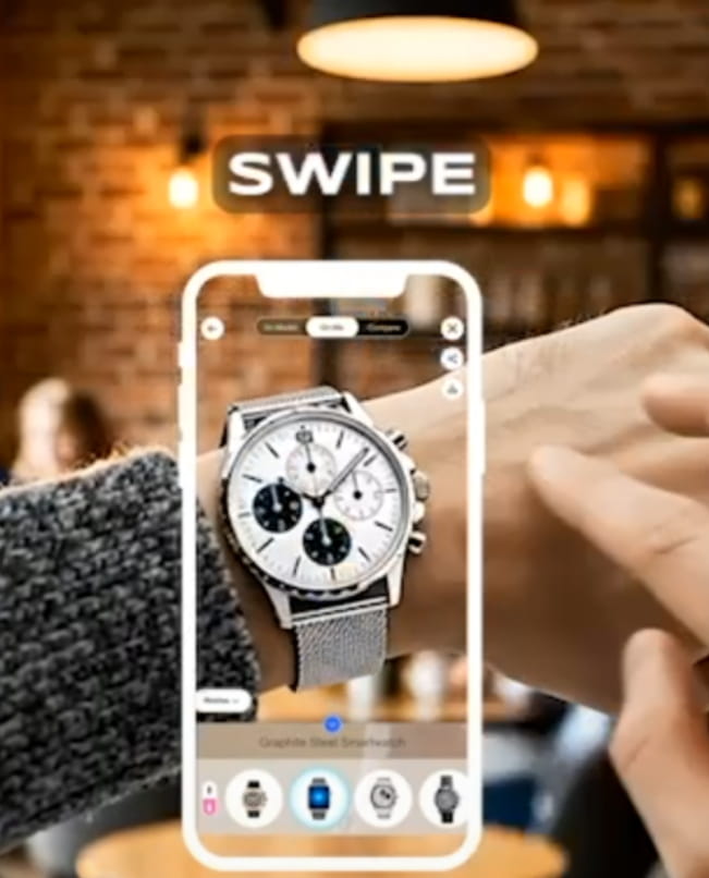 Let user's try-on watches in a fun and easy way. The virtual try-on AI allows shoppers to try on watches on their wrist or on a model while enjoying many other interactive features on their phones. Once decided, they can share and purchase it with ease.